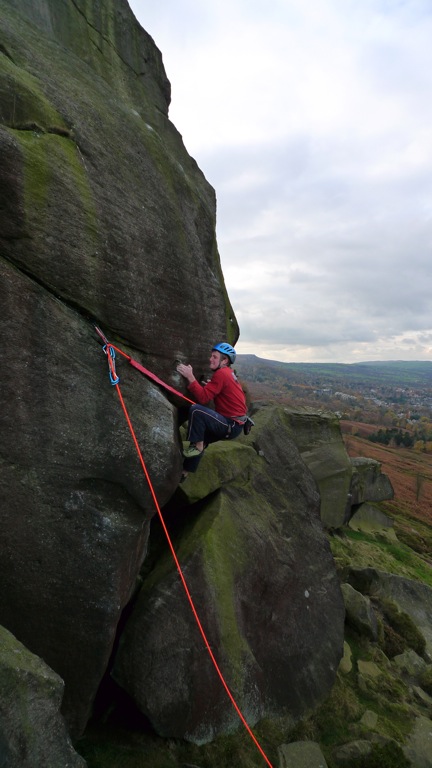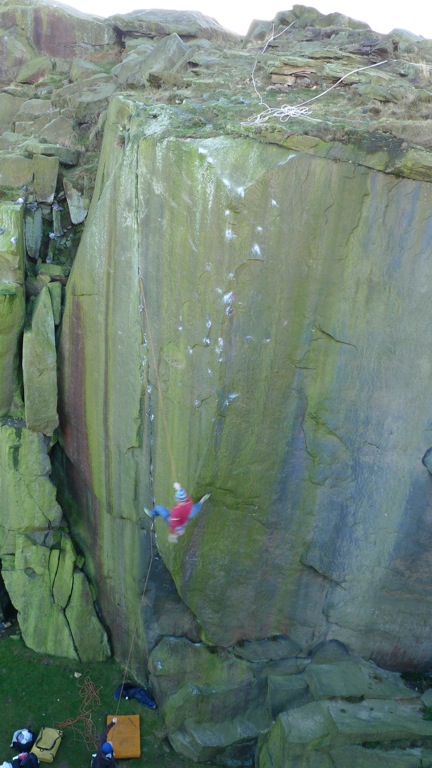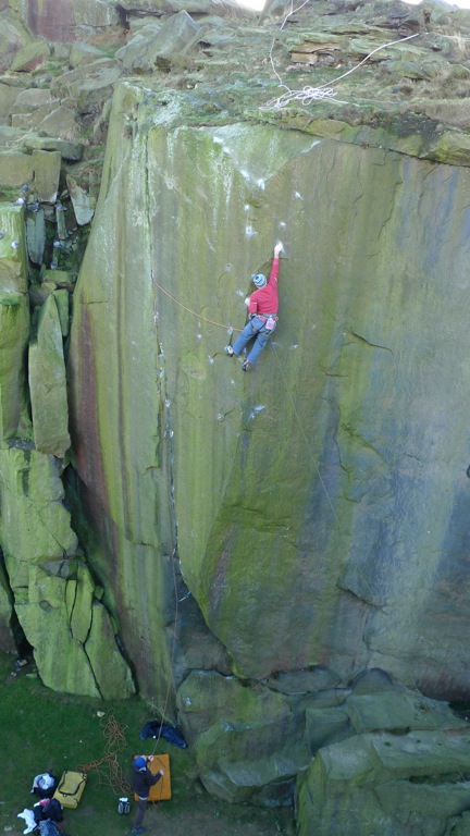 On Sunday morning I spent another short session at Ilkley with Steve Dunning and Dave Sutcliffe. Dave is getting pretty close to nailing Loaded, John Dunne’s E8 7a which climbs the arete right of Wellington Crack, from just over halfway up the latter route. Having had a couple of sessions on this myself I can fully vouch for the utterly desperate but at the same time, awesome nature of the climbing. Come on Dave!