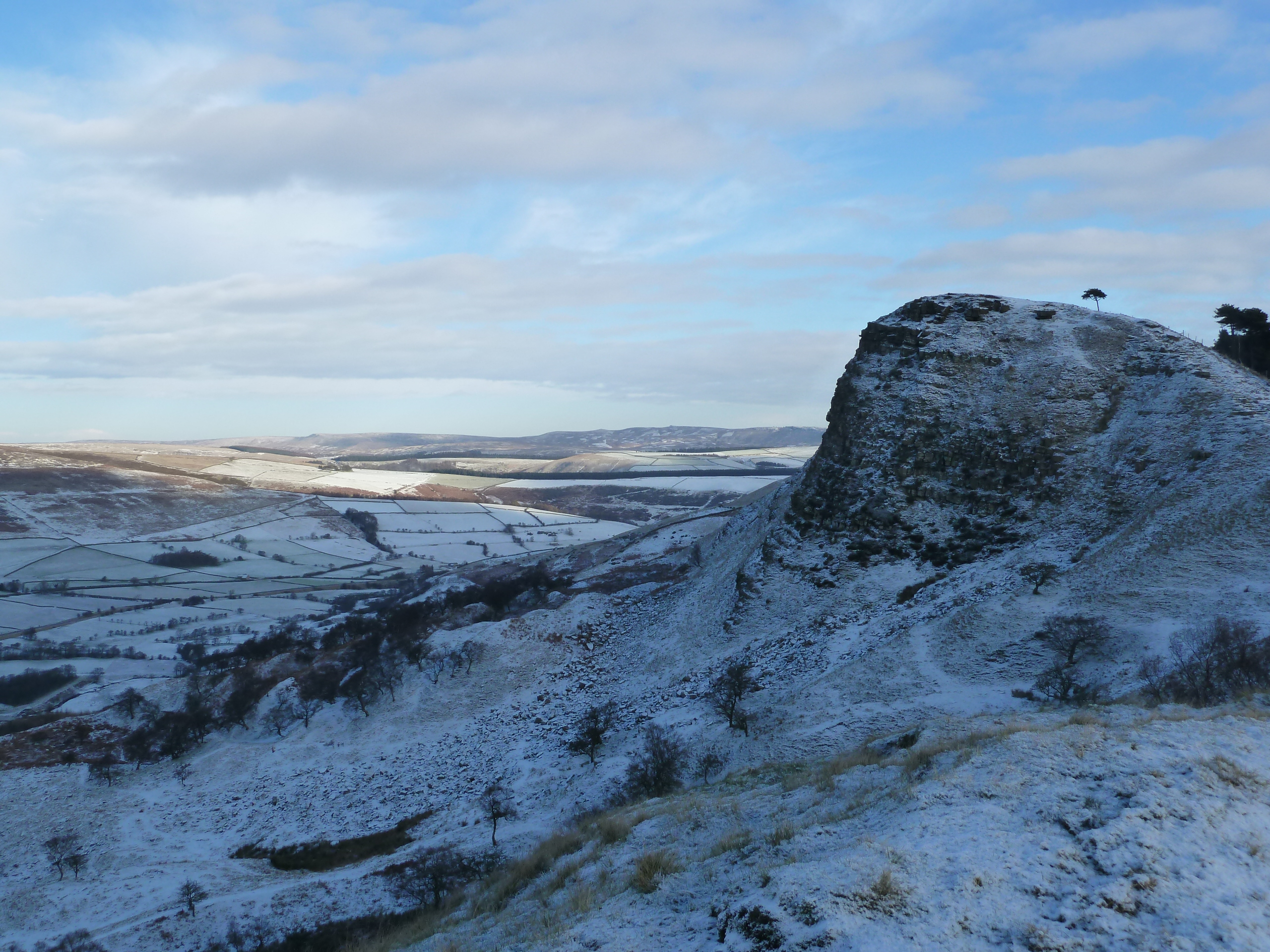 Finally, after a few weeks of work and family commitments I was a free man! My mate Chris in Sheffield was under strict orders to monitor conditions as soon as it started to go cold on Wednesday. We were still agonising on Friday having decided that The Downfall wouldn’t be in and I was all for going snowshoeing on the North York Moors, a 7.00am phone call had me repacking the sack for a winter climbing day. Now many of you may have climbed The Downfall, many more will have slogged up the hour or so to find it unclimbable, many may have got to Mam Tor only to find the shale thawed too much, but if you keep walking along the ridge you will be rewarded with some great easy and mid grade mixed climbing that often in condition, all it takes is a few days of North Westerlies to freeze the turf and covering of snow and you can have a good day out with just a gentle ½ hour walk in, with the added bonus of often having the crag to yourself.