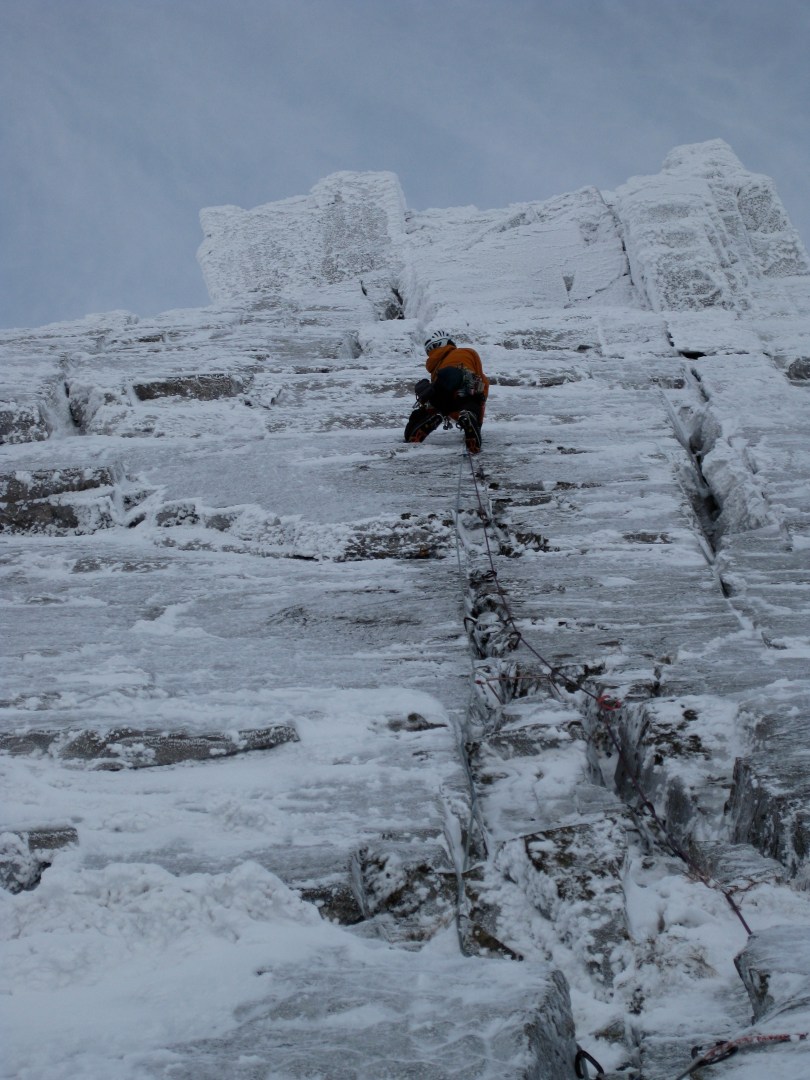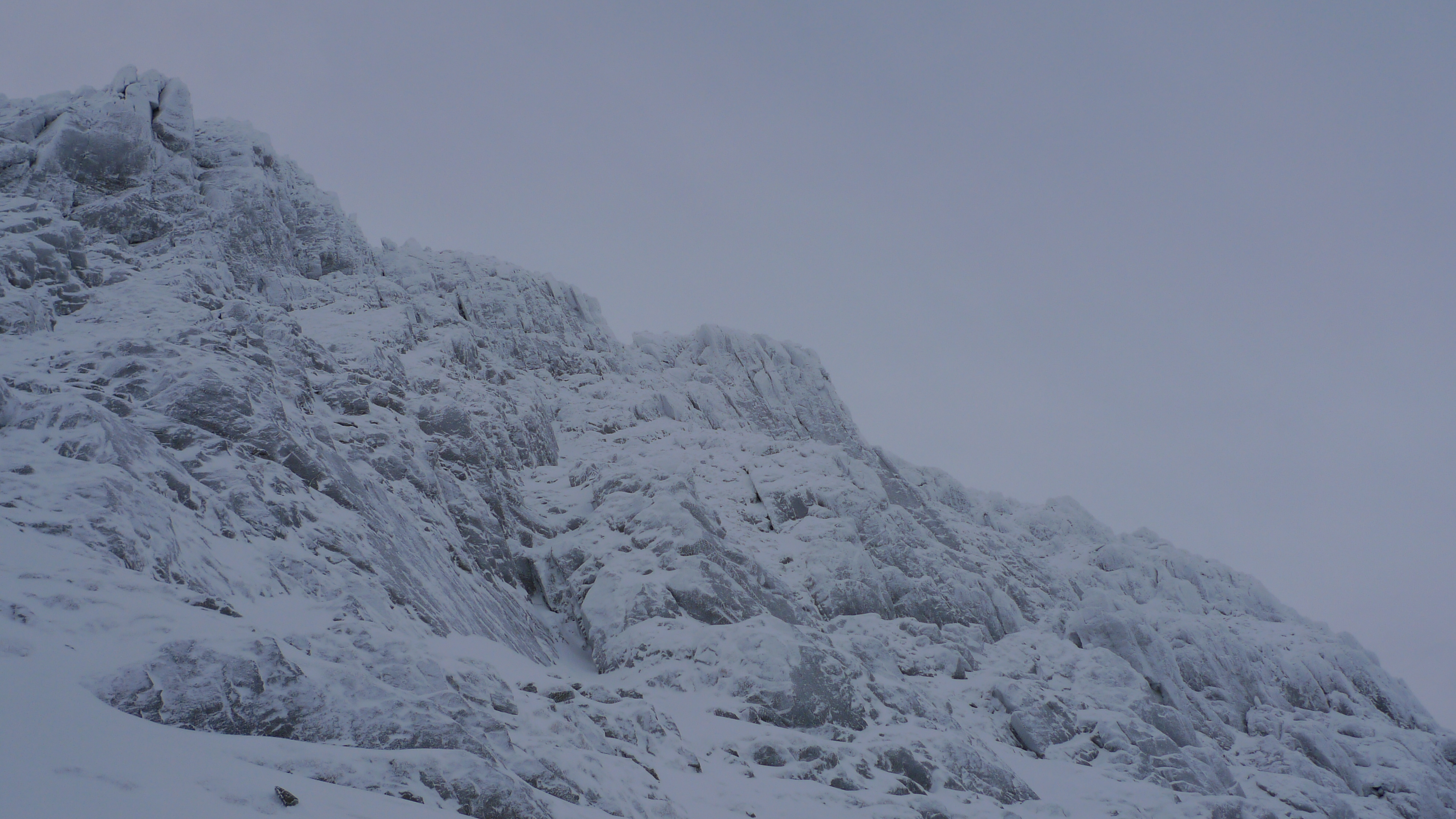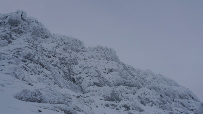 Gable Crag is regarded by many as one of the best and most reliable winter climbing venues in the Lakes. Now by winter climbing I’m not talking about fat cascades of ice and gullies choked with neve. I’m talking mixed climbing, snowed-up rock, frozen turf and icy cracks. For this realm, Gable Crag is as good as any and on Saturday conditions there were the best I’ve ever seen!
