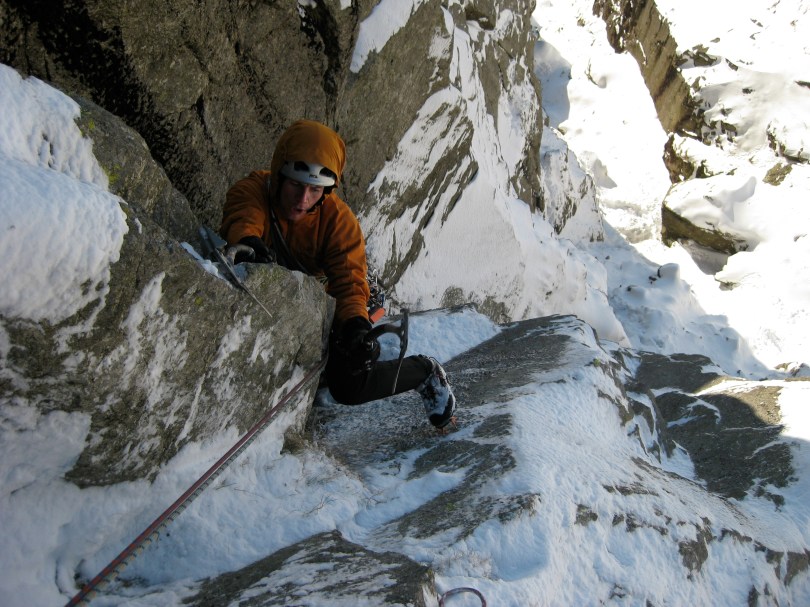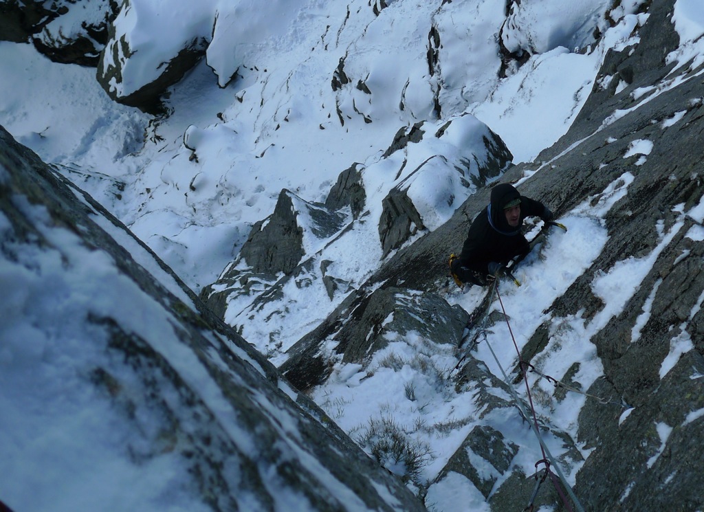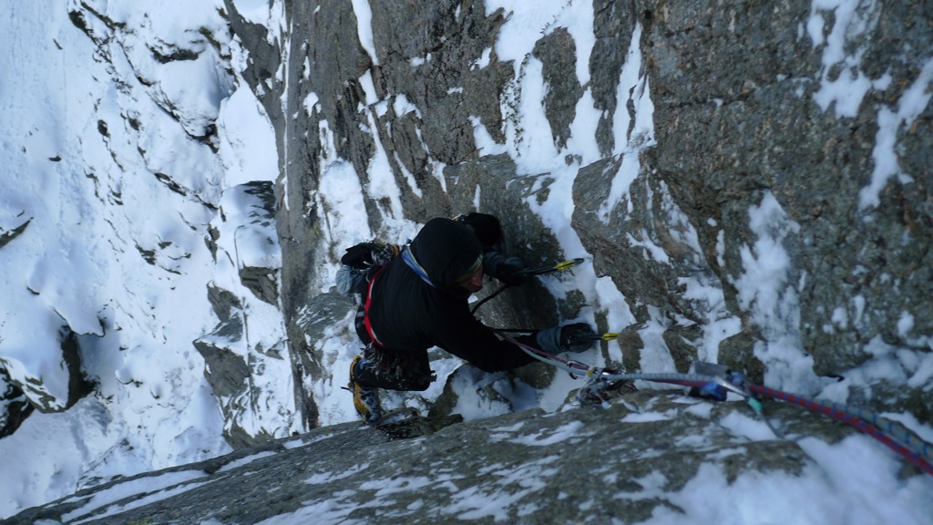 Now I’ve done many classic mixed climbs both in the Lakes and Scotland but I’d have to say that The Crack ranks as one of the best anywhere, giving 3 awesome sustained and technical pitches with some funky turf thrown in for good measure.The climbing is superbly varied, at times insecure, at times strenuous but always high quality.