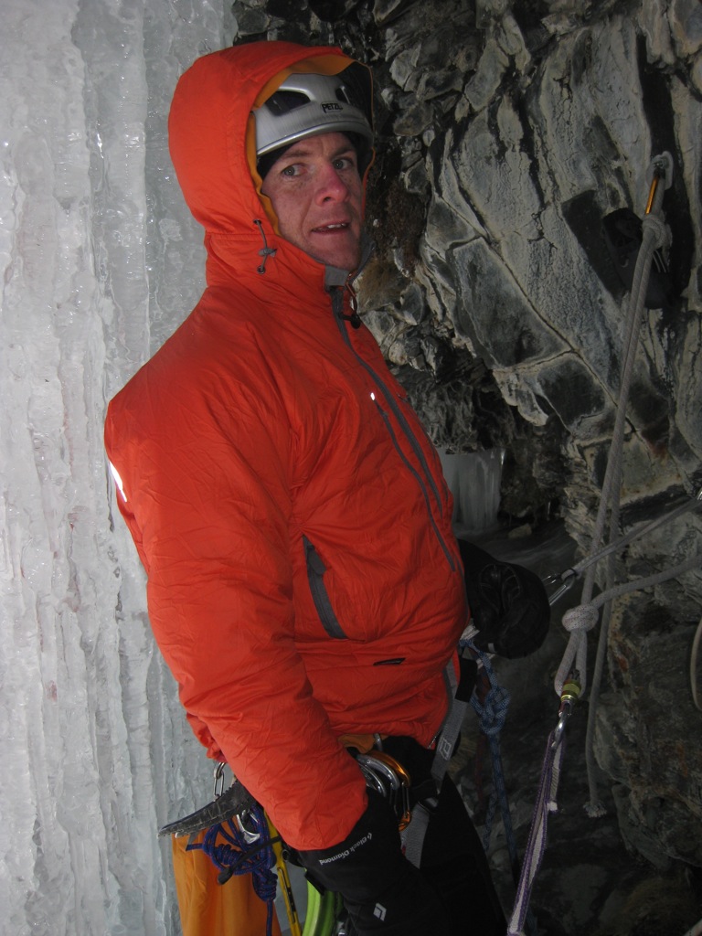 These days many companies produce what they call a “belay jacket”. Something you can throw on over the top of your other layers on long winter belay stints or when holding your mate’s ropes for hours when he’s dogging his sport project. They’re also great as a bivi back-up and can even be regularly seen posing down the local pub. For UK use the most favorable filling is some sort of synthetic insulation such as Primaloft or similar. This means that even if it gets wet or damp it won’t lose any of it’s insulating capacity.