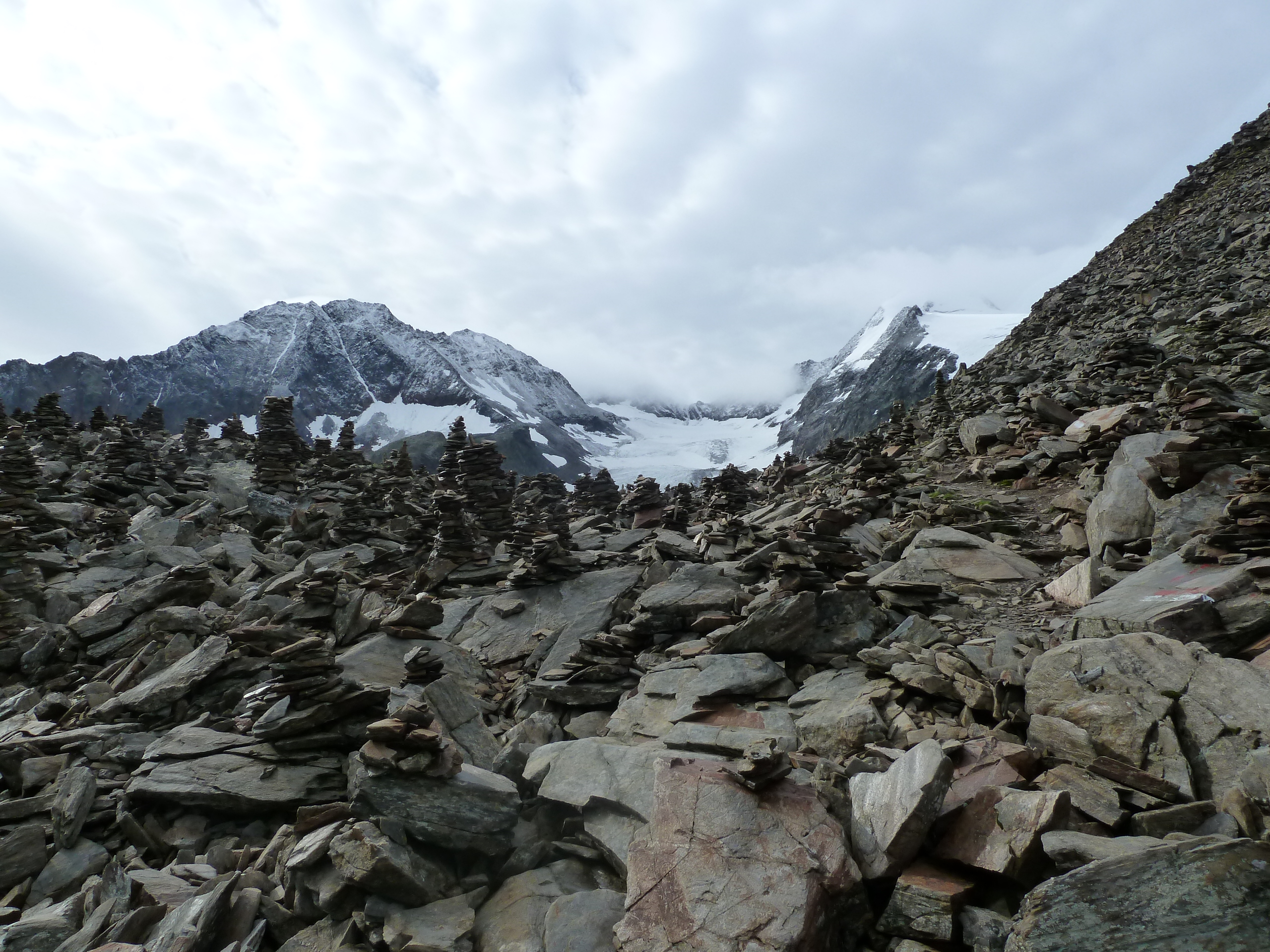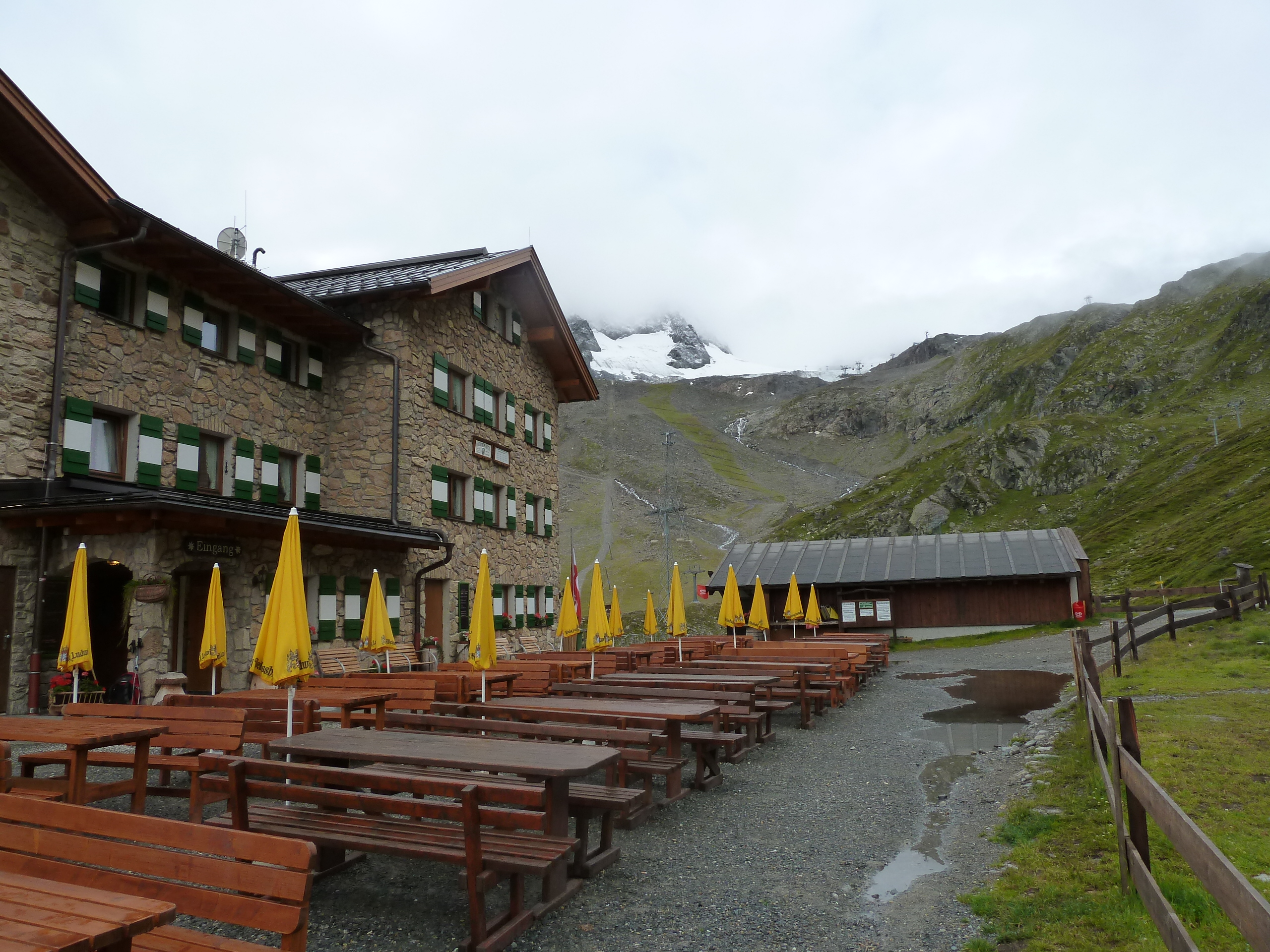 I had a week off and no partner so last year I tagged along with the Austrian Alpine Club on a tour of The Stubai Alps. I was in hallowed company with the leader being the Cicerone guidebook writer for the area and also the president of the UK section joined us. With great company and brilliant accommodation it’s probably a perfect week’s holiday, weather permitting but more of that later. The tour takes in all the main glaciers, high mountain huts and takes in some impressive alpine scenery. It’s a non technical tour so would be an ideal first adventure, but you do need to have crevasse rescue knowledge and be comfortable wandering around wet glaciers.