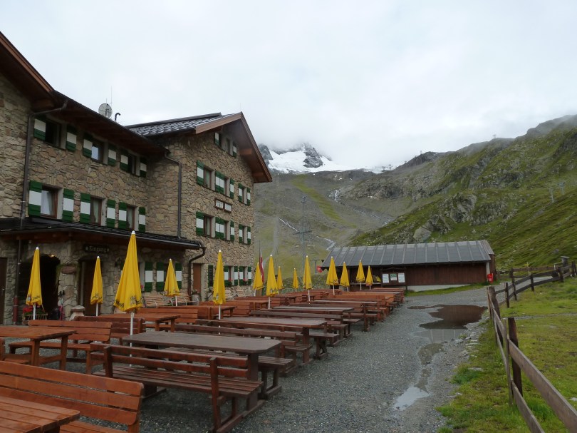 Day 3 is a straight forward day but covers some beautiful mountain scenery. Head due S up the valley and pick up the Sulztalferner glacier, stay on the right hand side of this glacier heading S to the top of the Wütenkarsattel at 3103m, this then has a short drop onto the Wütenkarferner glacier and heads for the magnificent Hochstubaihütte at 3174m. There you will be greeted by the warden with a glass of schnapps and enjoy a real mountain hut experience; the beauty of this hut being that it takes real effort to get to so is populated by keen walkers and mountaineers. No hot shower here but awesome food and great beer.