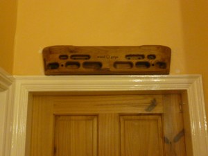The Compact Board certainly looks nice and fitted in well with the décor of my house, Katie decided to mount hers in the garage I mounted mine above the bedroom door – this was more important than you think. I had fought for many years (since the removal of my whole climbing garage to make extra garden space) for some extra training, wood was the marital compromise. The quality of the board was very good, it looked nice and felt very skin friendly. The wood is sustainably sourced Alder, Metolius stated that the criteria for wood selection came down to: suitability for climbing, availability, sustainability, and affordability. The board was not machined from a single solid block but from a block laminated using smaller sections. Very similar to a modern table you might buy from Ikea. The wood is very dark and had an excellent grain for friction.