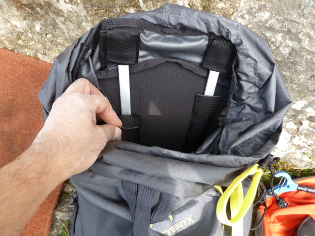 Arc’teryx describe it as a: A smaller-volume, robust yet highly comfortable backpack designed for alpine expeditions. The range come in three volumes, 35l, 55l and a whopping 75l and three sizes S, M and L so plenty of range to find one for your requirements. The official stats had it down as 0.95kg and the trusty CGR kitchen scales weighed it in at 1kg, so good enough. Stripped down it weighed 900g, so pretty darned light.