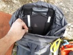 profile. This proved great for climbing with a helmet on, especially with the lid tucked into the main body. This was one of the best packs I have used for climbing with. It had a very low profile and offered an unrestricted view. The pack rode high when climbing and I had plenty of access to my harness. It wasn’t hydration compatible but this didn’t bother me as I don’t use hoses, if you do it’s about time you stopped anyway! Stop, take a nice drink and soak in the view, refill even from a beautifully cold mountain stream and drink some more.