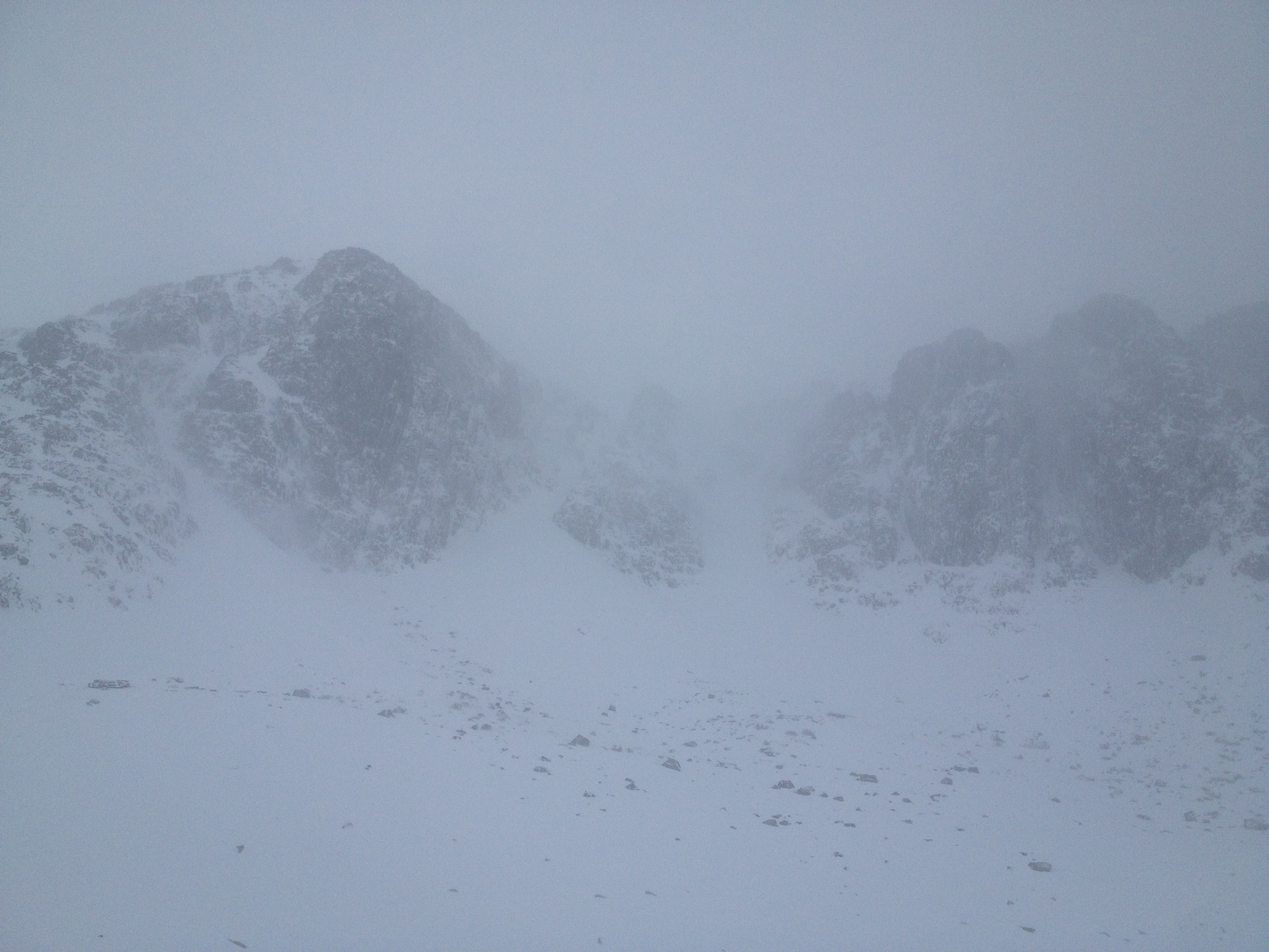 On Saturday James Foley and I headed up to Ben Nevis. A lot of the snow cover had been stripped low down with the rain but high up things were looking a lot better. We opted to go into Coire Na Ciste and this offered a bit of shelter from the wind. The coire was pretty much deserted. There was evidence of avalanche activity at the bottom of Number 2 and Number 5 Gully. We climbed Lost The Place, V 5 which is a great little mixed route, pretty varied and with a steep top pitch. This proved to be pretty sheltered from the wind until the final chimney which was being pummeled by spindrift. We topped out into a stern wind and quickly descended Number 4 Gully which seemed okay.