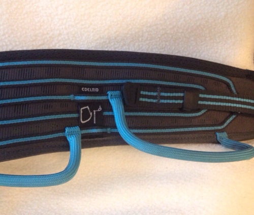 Though the Edelrid Orion Harness is billed as an ‘all-rounder’ suited to sport or mountain use its design is slanted more toward the trad and winter climber and those with fond memories of the original Tron movie. Ample racking by way of four asymmetric gear loops and two low profile cunningly concealed ice clipper slots (which it appears they have had to label so you can find them!) should cope with most racks. What sets this harness apart is its ’3D Vent’ technology which shapes the very wide foam padding ergonomically whilst using thin webbing strips to support the foam and allow ventilation. The waist-belt is a similar width to my other harnesses but definitely more ‘shaped’ whereas the leg-loops are significantly wider.