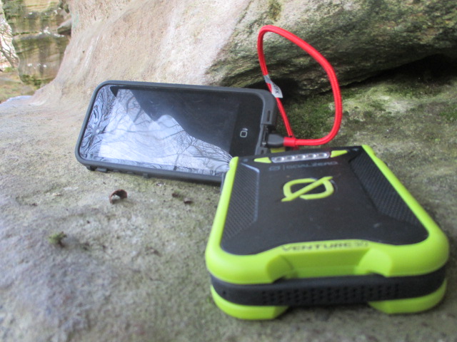 The input is via a micro USB port and is 2.1A @ 5V and the Venture 30 took about 5 hrs to fully charge via the mains. I haven’t yet charged it from a solar panel but I will be using it with a Nomad 7 in the spring. The output is 24A via the two standard USB ports so you could, if you needed to, charge two devices at once. That would however deplete he battery quicker. 2.4A is pretty good however and as I said earlier the 7800mAh provided plenty of consistent power for both my iPhone and iPad Mini which ae the two devices I take on any climbing trip.