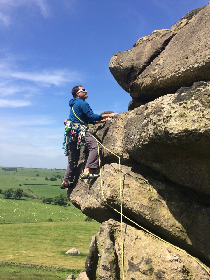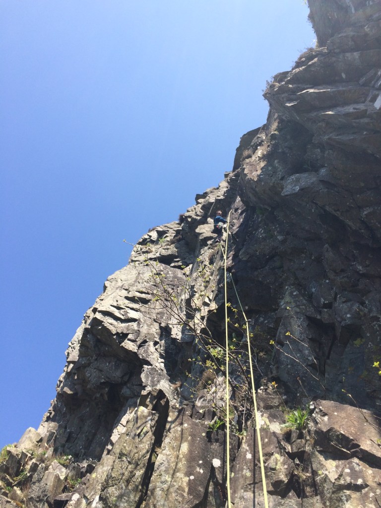 With that in mind the Rab Borealis Jacket is a great, windproof climbing outer that has been the mainstay of my climbing wear through this great weather we’ve been enjoying in May. I’ve worn it for sporty climbing in the valleys, high mountain days on the crag, running and hiking. It’s definitely a ‘one size fits all’ jacket. Pared down to the bare minimum of useable features and light as a feather the Borealis is an ideal summer climbing jacket. The stretchy Matrix fabric is a single weave, windproof material that has stopped most breezes, if it gets too windy I just pop on a lightweight hardshell and that does the trick. There’s just enough thickness to the jacket to provide some warmth unless you are on extended belay duties when you’ll need that insulation piece. That means it is heavier (315g on the trusty CGR scales) than a dedicated windshell but it is warmer so you don’t need a fleece layer, therefore more versatile. I’ve combined it will a light insulated vest (gilet) and that has worked perfectly and the DWR coating shed a reasonable shower but soon wet through in anything heavier.