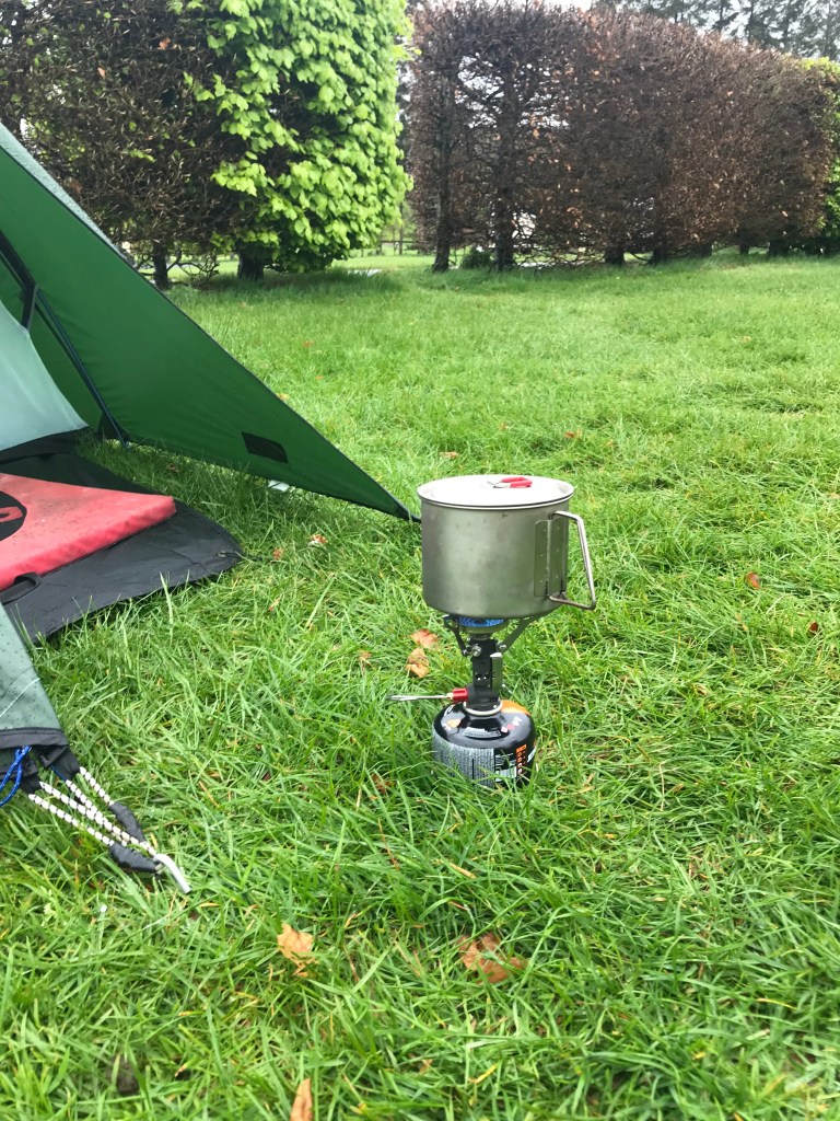 This is where I want a better stove than just a water boiler. We’ve reviewed several MSR Windburner and Reactor stoves with good results so why would you want to own a stand alone stove unit? Well, weight for one. The MSR Pocket Rocket Deluxe weighs in at only 83g so is super light. The normal pocket rocket is even lighter so if weight is a critical issue for you you can get a super light system with a small stove and a titanium pan ( I use an MSR Titan Kettle).
