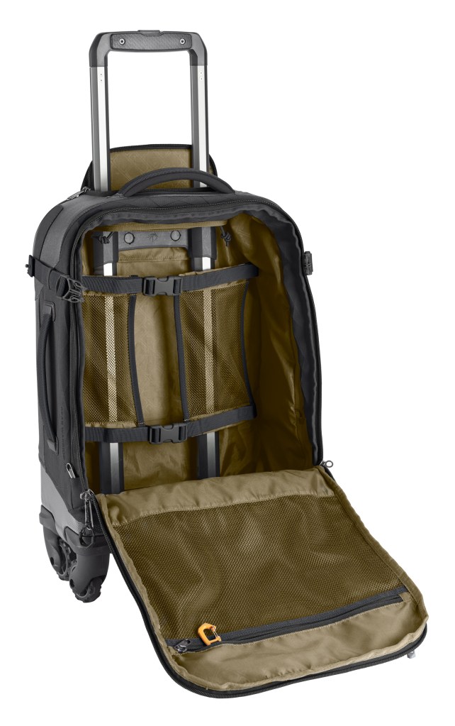 We featured an Eagle Creek Gear warrior pack in our Ultimate Pack List for Solo Travel feature and it’s proved to be a great bag – spacious and well featured. The Gear Warrior 4-Wheel International Carry On takes that pack and elevates it to the next level of comfort and practicality. It has 4 wheels (the clue is in the title) so is a push along style of carry on, with each wheel fully rotating through 360 degrees and can be removed using a 5mm hex key. One of the key features of the pack is the rock solid base construction – a solid polycarbonate base keeps everything rigid and upright when transferring through and enhances the internal space.