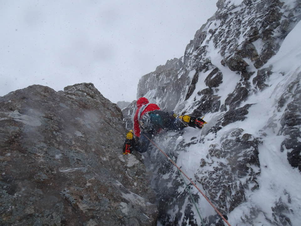 First off they fitted brilliantly well to both my Scarpa Mont Blanc Pros (original version) and my Phantom 6000s, the slightly wider front piece putting the inside points in a very good position for ‘edging’. Packing them into my sac required a little re-arrangement compared to my usual system but no real issues although as I stated earlier a crampon bag of some for is nigh on mandatory. An ascent of Scabbard Chimney in SCNL gave a good introduction to thin slabby ice a great test for a crampon and the G20 Plus felt absolutely planted. Very precise and solid with a good ‘feel’ which was most welcome as the fist two pitches provided only two pieces of gear but a plastering of great thin ice. Topping out and over rather than opting to abseil back down showed that the G20 plus was fine on more moderate terrain and certainly didn’t ball up like my old Darts tended to – they’re not perfect mind as the antibott only covers the heel but they felt much more assured in descent than the Darts ever did. On more purely mixed ground they felt brilliant. There is no flex or slop, it is easy to get the inside edge points to engage and that forged mono-point latched onto every nubbin and edge like a limpet – perhaps it was just that it was nice and sharp 😉 Having to make do with routes on the Douglas boulder because of the high avalanche risk gave a good flavour of their prowess on rock where again they excelled. I sadly didn’t get the opportunity to try them on any pure ice routes so I’ll add an update when I get the chance but I see no reason to doubt they will perform equally well there. Are there any downsides to the G20 Plus? Well they don’t pack as easily as most crampons but apart from that I’ve found nothing so far. I Do wonder if the three bolts that basically clamp the rest of the crampon around the central mono-point spine might loosen and need to be watched but I’ve seen no evidence of this and it would be no more onerous than checking your picks aren’t loosening. For me they are pretty much the perfect technical mixed crampon.
