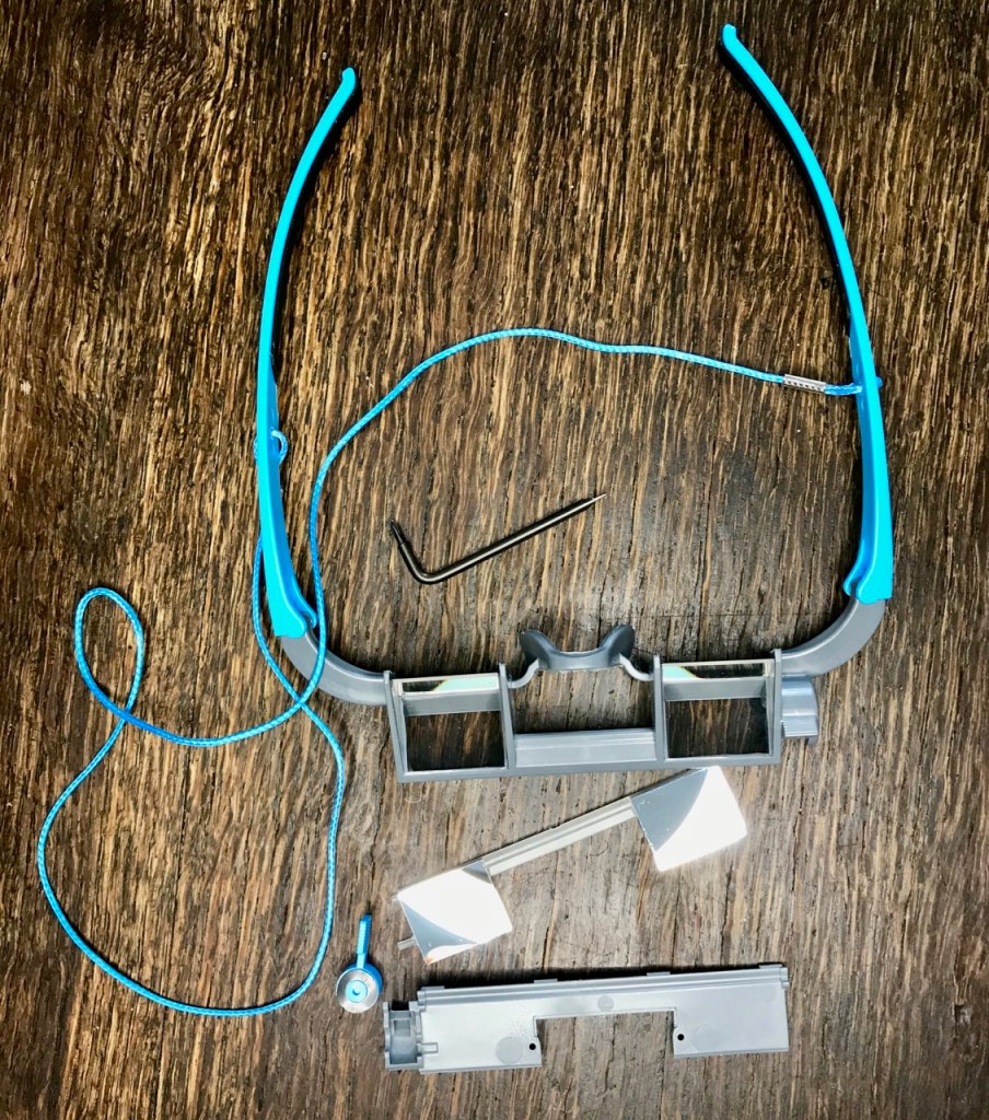 One of our earliest reviews here at CGR was of the Y&Y Belay glasses and since then there has been an explosion in the number of brands that have come to market. All have been based on the same basic principle of two fixed prisms + mirrors to provide that periscopic view of your partner’s progress without the need to crank your neck back uncomfortably. Materials, quality and style vary but the design is fundamentally the same. PitchSix are the first belay glasses that I have seen that alter this basic design by incorporating a mechanism allowing you to vary the tilt of the mirrors below the prisms. By doing so they allow you to adjust your field of view to the angle of the rock face no matter how steep without having to move your neck from that comfortably neutral position. Build quality is upper mid-market. The PitchSix uses robust nylon/plastic throughout its construction and has withstood several months of abuse without incident. The arms have a non slip rubber coating and attach to the frame by a simple stud and recesses hinge that pops off rather than breaks if abused, such as (ahem) dropping a loaded sac on them! The frame itself is bulkier and heavier than standard belay glasses as a result of the mechanism that tilts the mirrors.