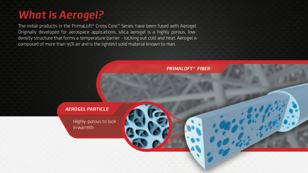 “We choose PrimaLoft® Gold Insulation Eco with Cross Core™ technology that incorporates aerogel to provide the soft and compressible feel of down with the crucial warm-when-wet performance of synthetic.”