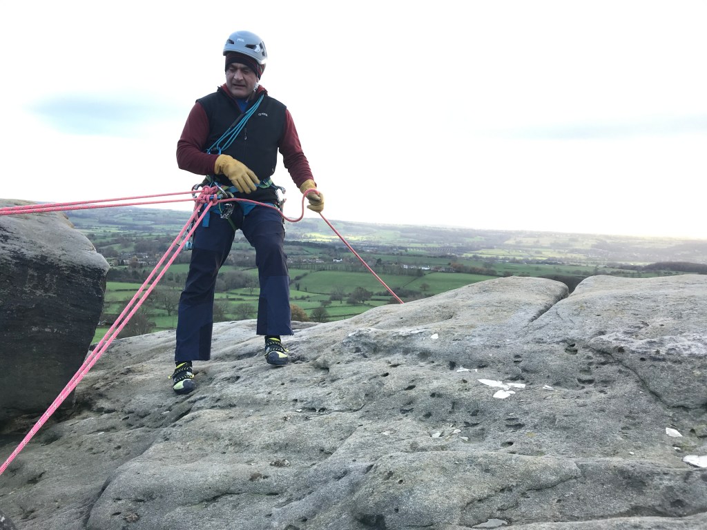 The Nevis trousers fitted well with a climbing harness. A bitterly cold Almscliffe Crag, Yorkshire.