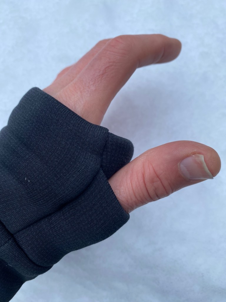 If you look at the the ThruDark range it is apparent that they are aiming mainly at the mountaineering, ski touring, general outdoors clientele rather than the technical climbing market. That is not to say the kit isn’t suited to technical climbing merely that the feature set is more general purpose. The Centurion Alpine Jacket is a case in point using a combination of Polartec® Hardface®, Polartec® PowerStretch® and Polartec® PowerAir™ ThruDark have produced a jacket which is very versatile but perhaps doesn’t immediately fit into an average layering set up; this is reflected on their site as they list it as a ‘mid-layer’ and ‘soft-shell’ which I think is an accurate reflection. At 593g for my size XS this is a hefty fleece, perhaps too much for normal mid layer duties. However the use of Polartec® Hardface® across the chest shoulders and upper arms allows the Centurion Alpine Jacket to function as soft-shell in less extreme conditions as it sheds light rain and snow well. The Hardface® treatment also means that those areas vulnerable to wear from a pack are more resistant to wear. I found that I could frequently wear the Centurion on approaches without overheating thanks to the breathability of the Polartec® PowerStretch® and Polartec® PowerAir™ and then continue once on a ridge etc. without immediately needing to reach for the hardshell or windproof making for a fewer faff stops. The Centurion Alpine Jacket was awarded an ‘Apex Award‘ by Polartec® in 2022 (though they haven’t updated their website yet!) for its innovative use of two Polartec® fabrics and one fabric enhancement (HardFace®). So this is a very warm mid-layer that can also fake it to a certain extent as a soft-shell if conditions aren’t too gnarly – think light snow or mizzle but you will need a shell once the wind picks up.