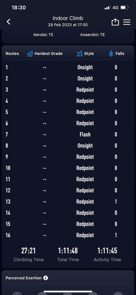 Climbing Specific Features There are a number of climbing specific features that prove useful to climbers who like to log their training and performance. For myself there was a slight learning curve involved in their use as logging training and performance as it happens has never been part of my routine, I always record details after I’ve finished a training session or day out and usually only in the most rudimentary of fashions. With the VERTIX 2 you can record routes, pitches, vertical ascent, falls (!), style (flash, onsight, redpoint etc.), grade and so on. Some of this is automatically recorded by the watch’s sensors and some you have to manually input. I tended to make do with the various auto recorded data and not do much manual input which limited the accuracy but I could easily see this feature ‘growing’ on me the more I used it. Certainly for sport climbing, indoor routes and even trad routes it may prove useful. There’s no specific bouldering mode but I logged my sessions without manually inputting each problem and it gave me a reasonably accurate indication of the total metres climbed – helpful to check on just how much time was spent nattering! For winter climbing the hassle of manual interaction is less likely to see it used.