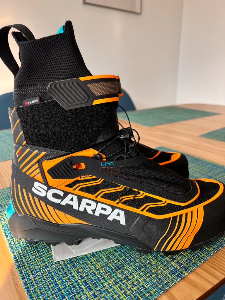 Final things worth mentioning are the lace cover and the weight. The lace cover flap was something that concerned me initially, as I thought it looked flimsy and also the attachment point didn’t look hugely secure. So far though, no issues! SCARPA claim this boot is lighter than the previous version at 660g per boot size 42. My size 43 weighs 747g and my size 43 Ribelle Tech 2 weighs 657g on the scales at home, so actually it seems that the new boot is almost 90g heavier. (NOTE – I have queried this with SCARPA as I had an early release version, and will update asap). Also some of this weight discrepancy might be to do with the sizing not actually being like for like due to the new last.