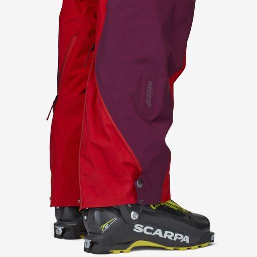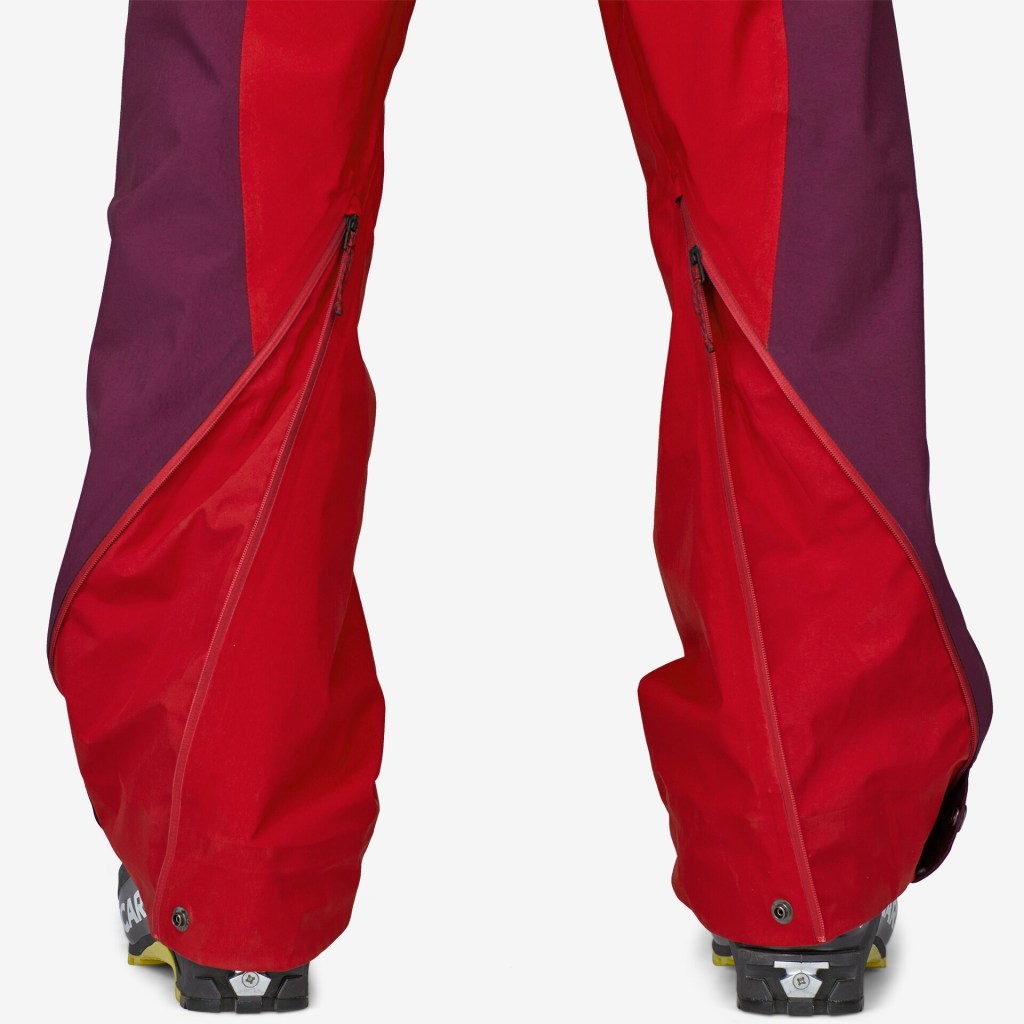 The lower legs have a zippered opening so you can adjust the volume depending on whether you are wearing ski boots or mountain boots. This is a nice idea, as often when alpine climbing in winter you might ski in and out from your route but change to climbing boots for the route itself. I like low profile legs fore climbing so I can see my feet and there’s no excess fabric to snag on things. The issue I’ve had when changing from ski boots to climbing bots is that the zippers seem to be really prone to snagging on the transition, particularly when going from ski mode to climbing mode. I asked Patagonia about this and to be fair to them, they said this was something that others had also brought up so I guess they’re gonna address it.