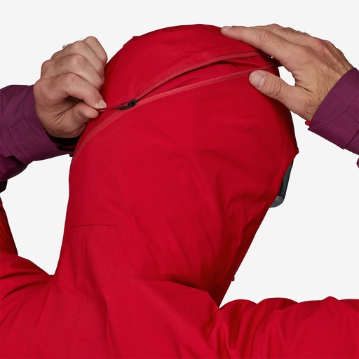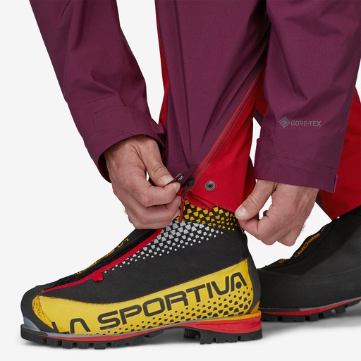 Going back to the fabric. I like the supple feel, it doesn’t seem heavy and crinkly nor does it catch easily. Despite having climbed a reasonable amount of Chamonix granite mixed ground in mine, I’ve only put one tiny hole in it. In bad weather, or on drippy ice it’s kept me perfectly dry and the wind at bay. Although I admit that I’ve not had the chance to put it to the test in Scottish rain just yet (but I think it would be as good as anything.) In line with Patagonia’s ethos of looking after the environment, all fabric is bluesign® approved, fair trade certified and free of PFCs and PFAs. They us a 3-layer, 3.9-oz 80-denier 100% recycled nylon GORE-TEX fabric with GORE® C-KNIT™ Backer Technology and a durable water repellent (DWR) finish for the main fabric with 3-layer, 2.9-oz 40-denier 100% recycled nylon GORE-TEX fabric with GORE® C-KNIT™ Backer Technology and a DWR finish on the gusset shell.