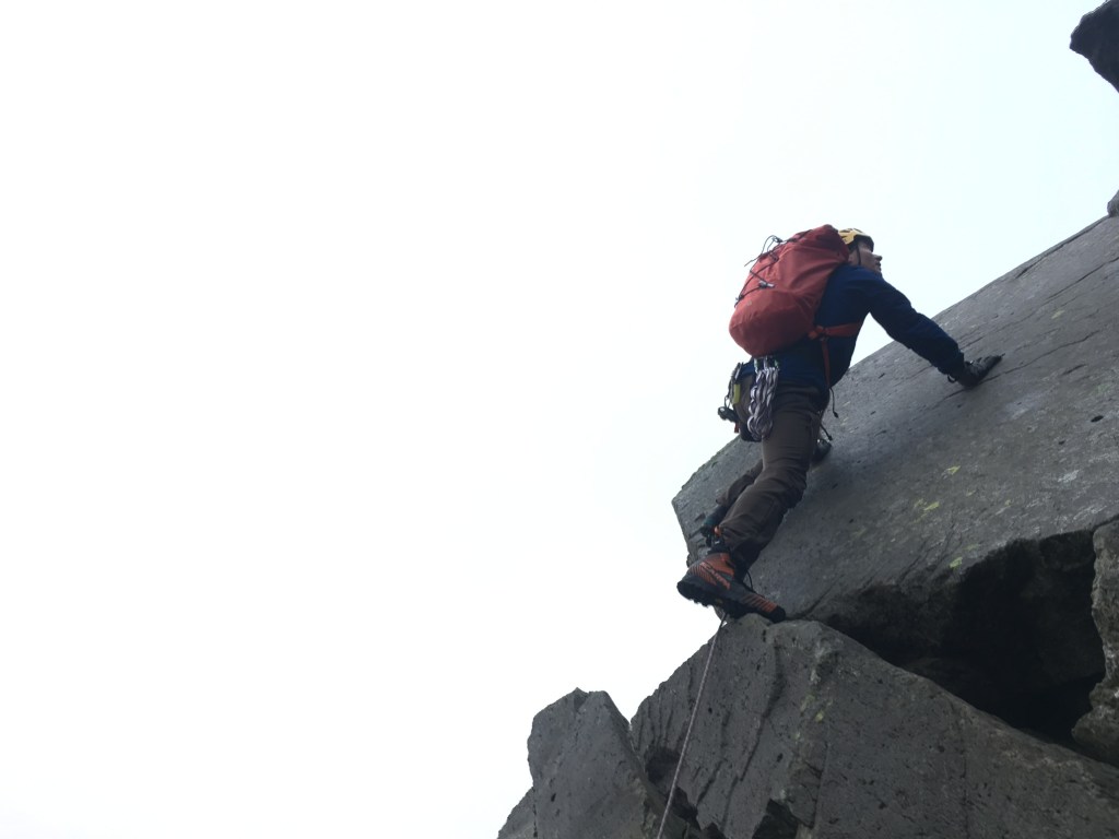 - Use of equipment: There are a few pieces of equipment that can help you stay safe while scrambling, such as a helmet, a harness, a rope and some basic climbing hardware (check out the kit list later). It’s important to learn how to use this equipment properly so that it can protect you in the event of a fall (which you should never be doing – the old climbers’ maxim “the leader must never fall” is especially true in scrambling)!