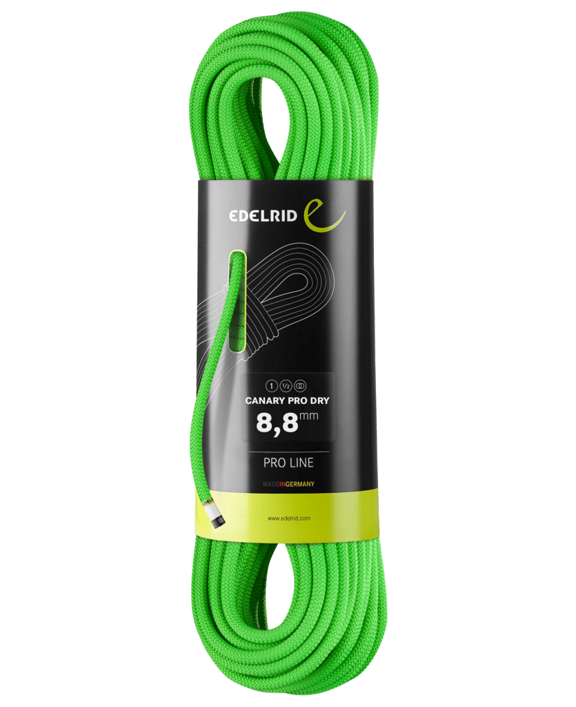 The Edelrid Canary Pro Dry 8.6mm Rope comes in two colour options and sizes 30 – 80m.