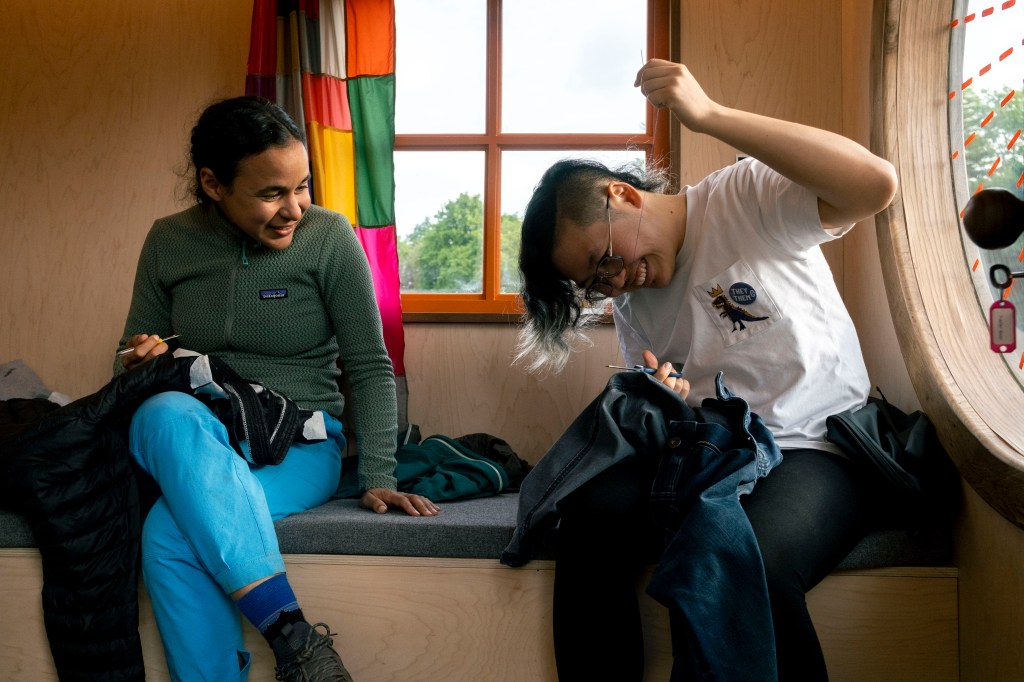 Patagonia has been on the road around the Peak District with their Worn Wear trailer, kickstarting the first-ever Worn Wear climb tour for the UK team. Having stopped in at the Keswick Mountain Festival, they made their way to ClimbOut to show support, get involved and repair climbing gear for the attendees. Representation and repair are two majorly important topics for our outdoor and climbing community to support and get behind – and they went hand in hand at this year’s festival.