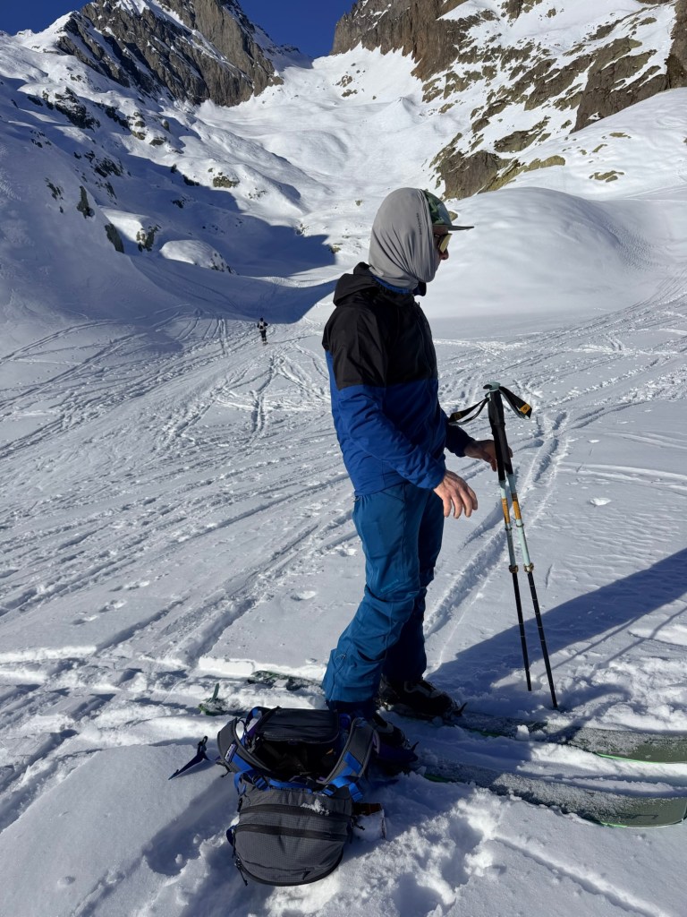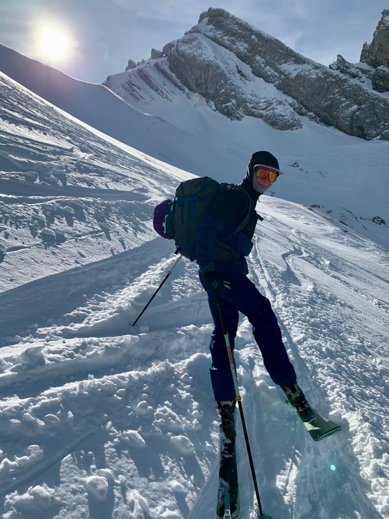 I’ve used this jacket out here in the Alps, for ski touring and lift served skiing since mid December. For uphill it’s fantastic, paired with a mid to heavy weight base layer depending on conditions, it regulates my temperature well, blocks wind, shuns any light precipitation and breathes effectively. I don’t really feel like I need to chop and change layers as it performs so well in all conditions and in spring I can see me happily wearing this as my outer for sunny corn descents. The hood is well designed to fit under a climbing or skiing helmet and is comfortable over a cap/buff combo (like the cool Freeride youths wear).