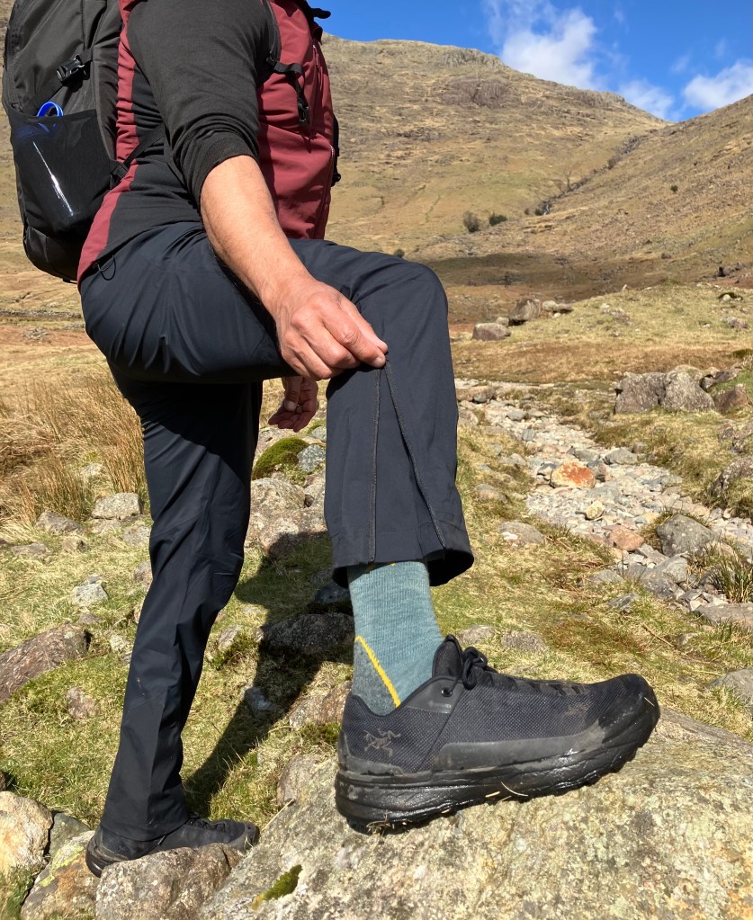 - No Full Side-Zips: Most traditional rain pants have 3/4 or full-length side zips so you can pull them on over heavy hiking boots. Because the Kinetics are slim-cut and only have ankle gussets, they are very hard to pull over chunky footwear. They are meant to be worn from the start of the day, not whipped out during a sudden downpour. They also work OK with trail running shoes, so you can happily wear shorts and then when the clouds thicken or the breeze gets up you can get them over shoes (just).